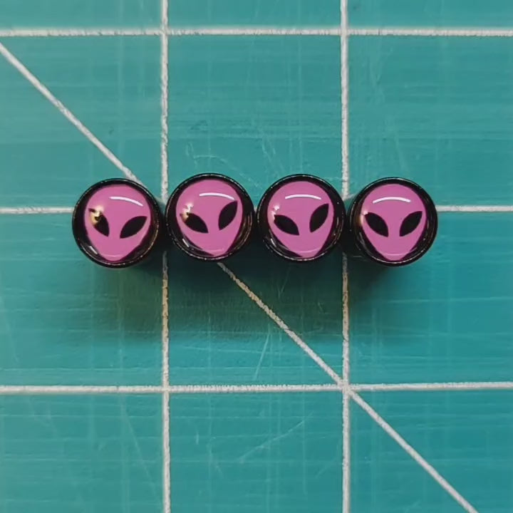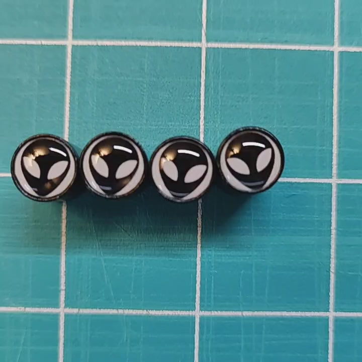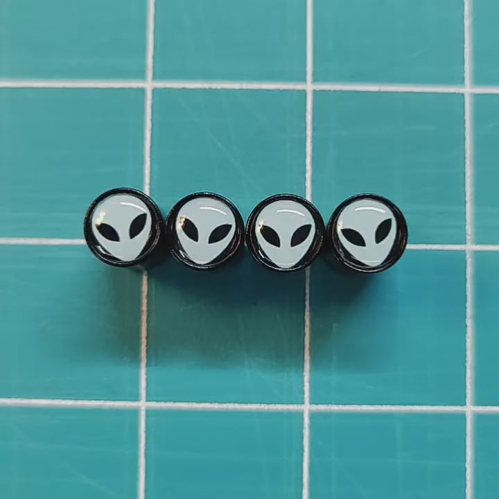 Alien Face Tire Valve Caps - Black Aluminum - Set of Four (5 colors)