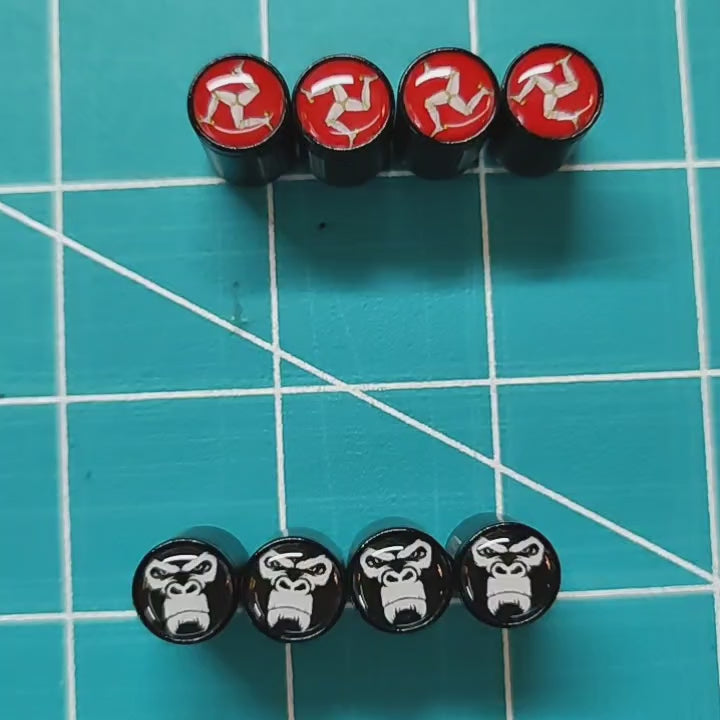 Watch out, there's been a gorilla sighting! Check out these brand new Angry Gorilla Ape (Style 6) Tire Valve Caps - Black Aluminum - Set of Four. These angry gorilla valve caps are designed to fit any Schrader valve stem (Universal) and feature an internal neoprene o-ring to protect your valve stem. Crafted from aluminum and black coated, these angry ape valve caps are rustproof and durable. These angry gorilla valve caps are easy to install and look great on any wheel. Need gorilla gifts? These angry ape valve caps make a great gift for any gorilla lover.