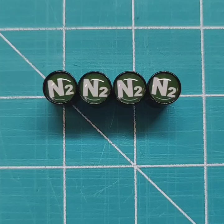 These are brand new Dark Green N2 Nitrogen Tire Valve Caps - Black Aluminum - Universal. They are made to fit any Schrader valve stem (Universal), they fit on all vehicles. Available in 4pk, 8pk, 12pk, and 20pk. These dark green n2 nitrogen valve caps have an internal neoprene o-ring to protect your valve stem. Made of aluminum, black coated. Valve caps are rustproof. These dark green n2 nitrogen valve caps are easy to install and look great on any wheel. Need n2 nitrogen gifts? These dark green n2 nitrogen tire valve caps make a great gift for any n2 nitrogen fan.