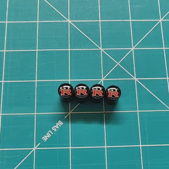 These are brand new GTR Logo - Grand Touring Racing - Tire Valve Caps - Black Aluminum - Set of Four. They are made to fit any Schrader valve stem (Universal), they fit on all vehicles. These GTR tire valve caps have an internal neoprene o-ring to protect your valve stem. These valve caps are made of aluminum and black coated. They are rustproof. These GTR tire valve caps are easy to install and look great on any wheel. They make great gifts too!