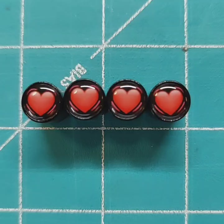 Red Beating Heart Tire Valve Caps - Black Aluminum - Set of Four